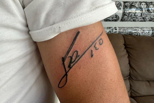 یک فوتبالیست کهنه کار آرژانتینی امضای اورجینال لیونل مسی را روی دست خود جاودانه کردند.