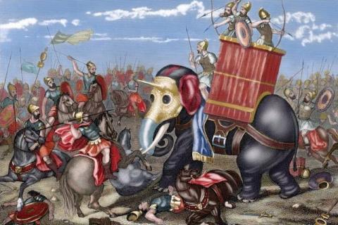 در این جنگ، فرماندهی نیروهای کارتاژنی به دست هانیبال، یکی از رهبران نظامی بزرگ دوران باستان بود که چندین شکست قابل توجه به رومیان وارد کرد. احتمال دیگر این است که استخوان از فیلی باشد که در جنگ داخلی دوم جمهوری روم بین سال ۴۹ قبل از میلاد در نبرد مورد استفاده قرار گرفته باشد و تحت فرماندهی ژولیوس سزار بوده است.