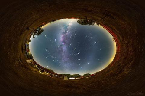 در جریان بارش شهابی برساوشی (Perseid) امسال، کلارو دوربین ۳۶۰ درجه برای عکاسی از آسمان کامل شب تنظیم کرد تا عبور گلولههای آتشین از آسمان شب را ثبت کند. او در آسمان صاف و بدون نورآلکووای پرتغال، مناظری از شهابسنگها به علاوه نور سفید کهکشان راه شیری و درخشش حیرتانگیز نور زودیاک (بینالطلوعین) را ثبت کرد.