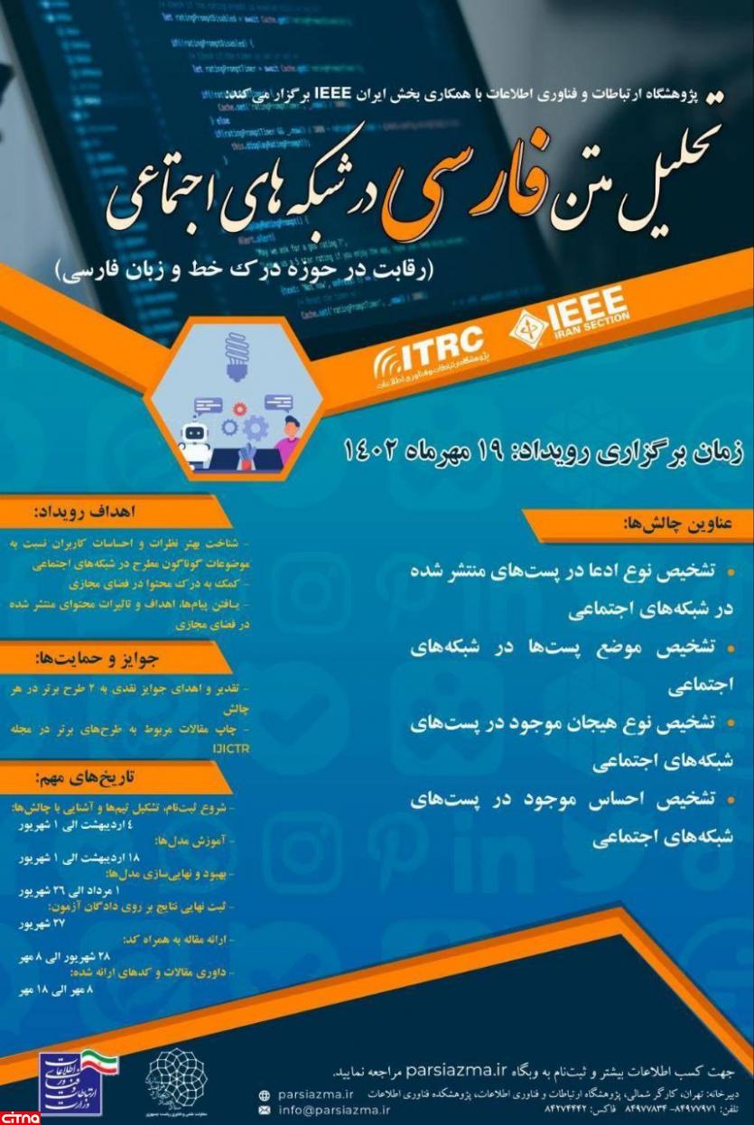 در همین راستا، دکتر متین هاشمی، مدیرعامل شرکت توسعه هوش مصنوعی ابر (هما) به خبرنگار سیتنا، گفت: این رویداد توسط تیم «پارسی آزما» با مدیریت خانم دکتر فرهودی که ذیل پژوهشگاه ارتباطات و فناوری اطلاعات فعالیت میکنند، به صورت مسابقه و در قالب یافتن پاسخ مناسب برای چهار چالش با عناوین چالش تشخیص موضع در پستهای شبکههای اجتماعی، چالش تشخیص نوع ادعا در پستهای منتشر شده در شبکههای اجتماعی، چالش تحلیل احساس موجود در پستهای شبکههای اجتماعی و چالش تشخیص نوع هیجان موجود در پستهای شبکههای اجتماعی، برگزار شد.