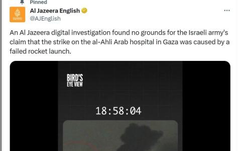 به گزارش سیتنا به نقل از شفقنا، الجزیره به نقل از تیم تحقیق دیجیتال خود اعلام کرد که بررسیهای این تیم که ثانیه به ثانیه رخدادها را بررسی کرده به وضوح نشان میدهد، که اسرائیل چهار بار در بازهی زمانی منتهی به انفجار حوالی بیمارستان الاهلی العربی (المعمدانی) را هدف قرار داده است که یکی از آنها موجب فاجعه کشتار حدود پانصد تن در این بیمارستان شده است. این موارد در لحظات ۱۸:۵۴:۲۸ و ۱۸:۵۵:۰۳ و ۱۸:۵۷:۴۲ و ۱۸:۵۸:۰۳ بوده است که مورد آخری منتهی به فاجعه شده است.