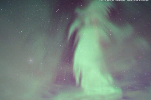 به گزارش سیتنا، به نظر شما، این شفق قطبی شبیه به چیست؟ در اوایل صبح سال 2013، هنگامی که با سرمای هوا برای تماشای آسمان شمال کانادا مقابله میکردیم، یک شفق قطبی غیرعادی ظاهر شد.