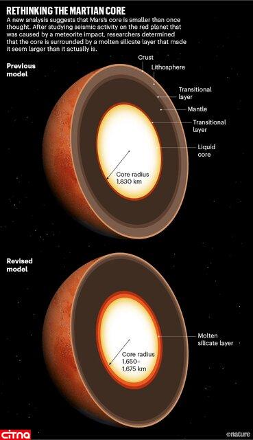 تحقیقات جدید نشان داد که هسته فلزی مایع سیاره سرخ، کوچکتر از آن چیزی است که دانشمندان پیش از این تصور میکردند.