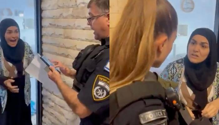 ویدئو همچنین نشان میدهد، در حالی که رئیس تیم پلیس حکم این زن را میخواند، افسر زن همراه او تلاش میکند تا این زن فلسطینی را جهت بازداشت به سمت خود بکشد و این زن نیز مقاومت میکند و همزمان افسر مرد دیگر سعی میکند او را ساکت کند.