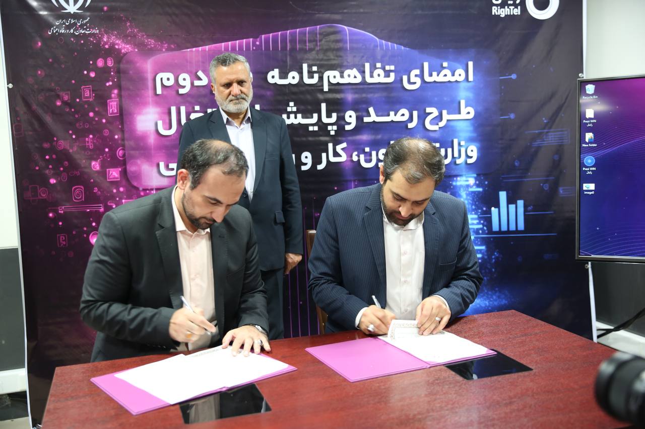 مراسم امضای تفاهمنامه فاز دوم طرح رصد اشتغال وزارت تعاون، کار و رفاه اجتماعی و شرکت خدمات ارتباطی رایتل برگزار شد.