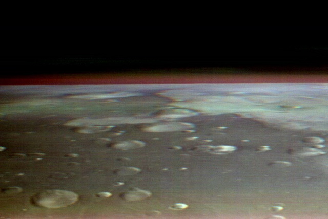 اما نتیجه حاصله ارزش صرف این زمان و تلاش را داشت، زیرا سطح خشک و دهانهای مریخ در پیشزمینه ظاهر میشود که منظرهای عجیب و شگفتانگیز است و در بالا، جو نازک و شکننده مریخ با ابرها و غبار معلق در آن شناور است.
