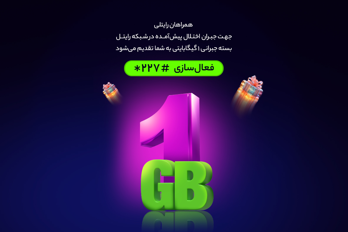 یک گیگابایت اینترنت به تمامی مشترکین دائمی و اعتباری رایتل اختصاص خواهد یافت.
