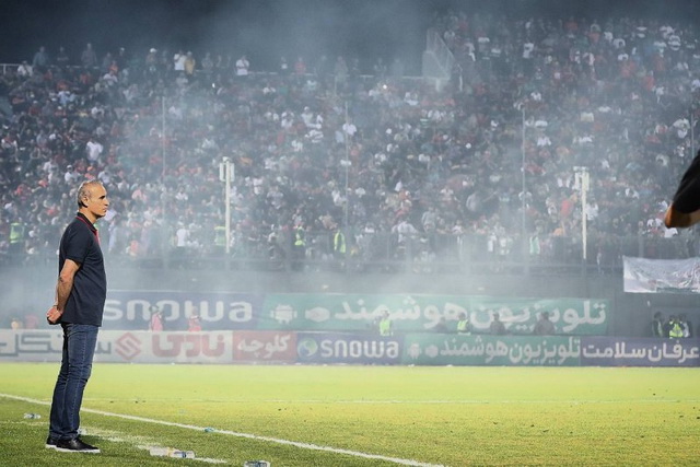 با این وجود در میان بهت او و بازیکنانش و در میان باران بطری گل محمدی و بازیکنان راهی رختکن شدند و فقط بیرانوند بشدت تشویق شد.