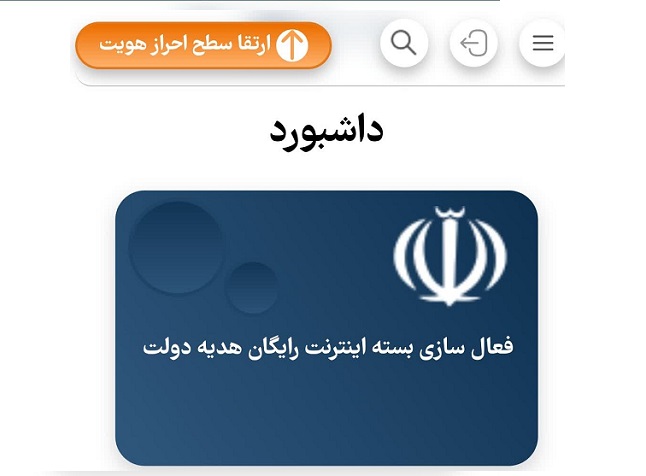 گزینه فعال سازی اینترنت رایگان هدیه دولت فعال شد.