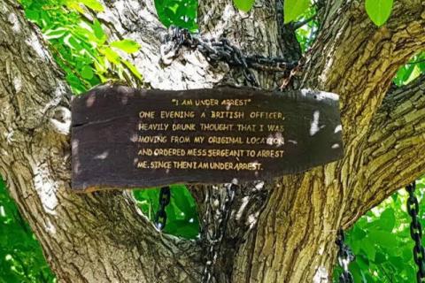 او وقتی یک شب بسیار مست بود و به محل سکونتش باز میگشت، درختی را سر راه خود دید و وقتی نتوانست آن را از سر راه خود کنار بزند، عصبانی شد و دستور داد، درخت را دستگیر کرده و به غل و زنجیر بکشند. او بعد از اینکه هوشیار شد هم این درخت را آزاد نکرد تا به محلیها بفهماند، هرکس دست از پا خطا کند، به همین ترتیب تنبیه و مجازات میشود.