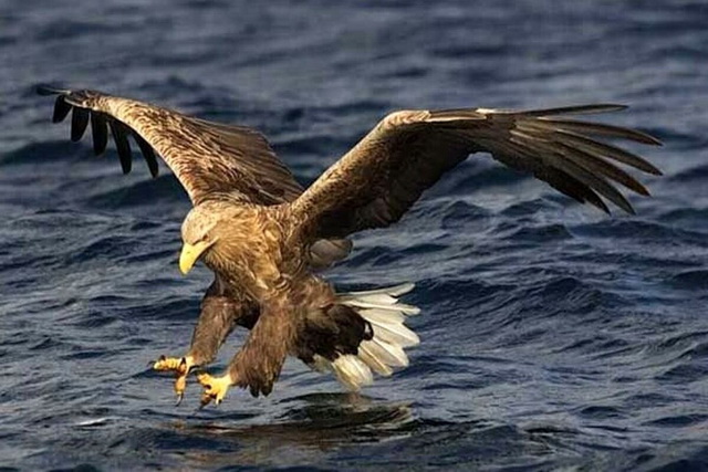 رئیس اداره محیط زیست نیشابور افزود: این پرنده شکاری ۸۰ تا ۹۰ سانتیمتر طول دارد. دمش کوتاه و سفیدرنگ و بالهایش بزرگ و پهن با منقاری زرد و بزرگ و گردن بلند است. وی با اشاره به اینکه نر و ماده عقاب دریایی دمسفید هم شکلاند، بیان کرد: این پرنده شکاری از ماهی، پرندگان آبزی، پستانداران و کلاغ سیاه تغذیه میکند.