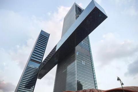 «با الگوی شبکه الماس، پیوند برجها و پل از چهار طرف با استفاده از سیستم سازه لولهای و با مصالح فولادی انجام شده است.»