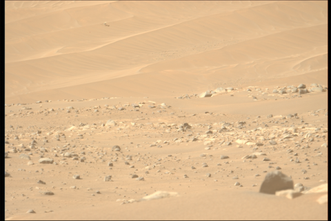 مریخنورد استقامت ناسا عکسی از همراه شکسته خود«بالگرد نبوغ» به زمین فرستادهاست که آن را تنها بر روی تپهای در مریخ نشان میدهد.
