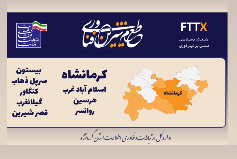 مدیرکل ارتباطات و فناوری اطلاعات استان کرمانشاه در ایام دهه مبارک فجر، از انعقاد قرارداد پروژه فیبرنوری منازل و کسبوکارها در نهمین شهرستان استان کرمانشاه خبر داد.