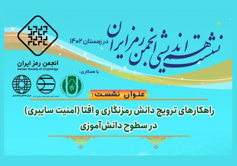 نشست هماندیشی «راهکارهای ترویج دانش رمزنگاری و افتا (امنیت سایبری) در سطوح دانشآموزی» با همکاری اتحادیه انجمنهای ایرانی علوم ریاضی، اتحادیه انجمنهای علمیآموزشی معلمان ریاضی ایران و شورای خانههای ریاضیات ایران در روز دوشنبه 30 بهمن 1402 به صورت مجازی در نشانی https://vc.sharif.edu/ch/isc از ساعت 16 تا 18 برگزار خواهد شد و عموم افراد علاقهمند به این موضوع میتوانند با انتخاب گزینه میهمان در آن شرکت نمایند. در این نشست شش سخنرانی کوتاه از سوی افراد مرتبط با موضوع، از جمله مدیرکل دفتر آموزش متوسطه دوره اول وزارت آموزش و پرورش، معاون امنیت پژوهشکده امنیت پژوهشگاه ارتباطات و فناوری اطلاعات، نمایندگان دبیرخانههای کشوری آموزش ریاضی و فناوری در وزارت آموزش و پرورش و همچنین نمایند نظام صنفی رایانهای به مدت یکساعت و نیم، ایراد شده و راهکارهای پیشنهادی سخنرانان در خصوص موضوع بیان خواهد شد و در باقیمانده وقت، ضمن پاسخ به سئوالات مطرح شده، حاضرین در نشست نیز میتوانند نظرات خود را بیان نمایند.