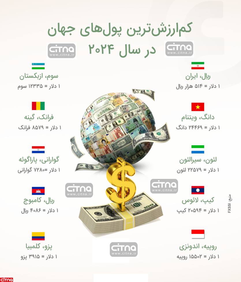 کمارزشترین پولهای جهان تا ۱۰ ژانویه ۲۰۲۴؛ ریال ایران در جایگاه نخست! (+ اینفوگرافیک)