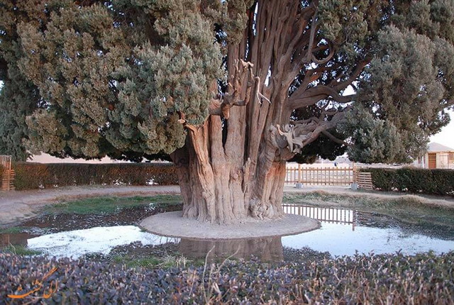درخت سرو ابرکوه یزد که به عنوان نمادی از زندگی و زیبایی شهرت دارد و بی اغراق یکی از عجایب به شمار میرود.
