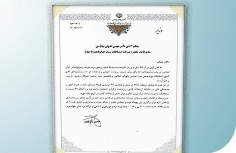 وزیر ارتباطات از اقدامات همراه اول برای تأمین پایداری زیرساختهای ارتباطی در ایام برگزاری انتخابات مجلس و خبرگان رهبری و اجرای فرآیندهای الکترونیک، تقدیر کرد.