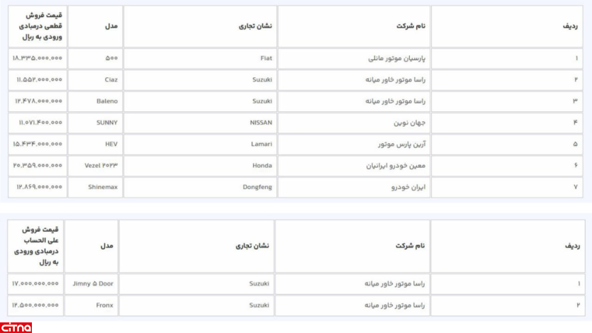 عرضه جدید خودروی وارداتی از امروز سه شنبه (22 اسفند ماه) آغاز و تا روز پنجشنبه (24 اسفند ماه) ادامه دارد.