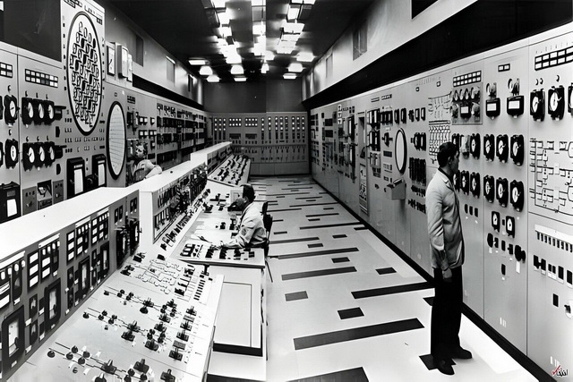 در تصویر کنسول کنترل اولین واحد نیرو در ایستگاه اتمی شوروی را میبینیم.