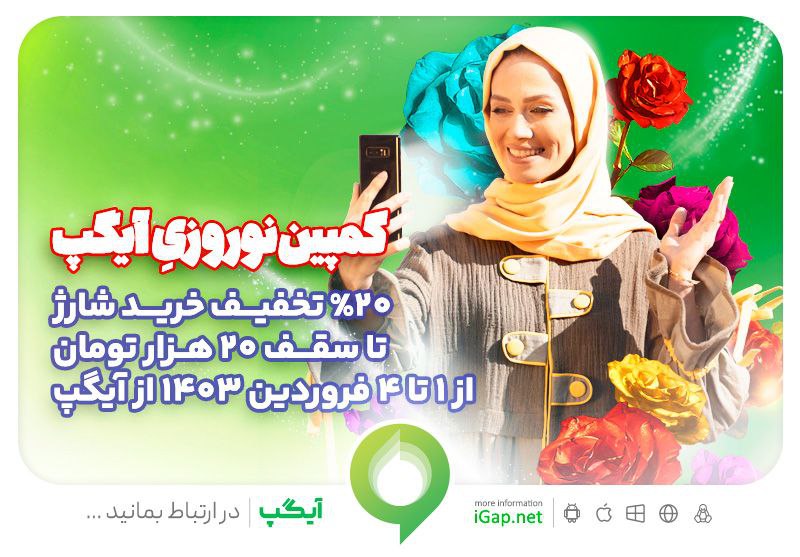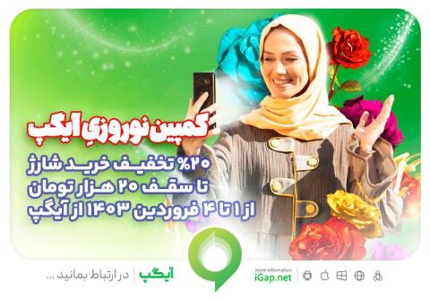 کاربران آیگپ در روزهای اول، دوم، سوم و چهارم فروردین میتوانند از ۲۰ درصد تخفیف خرید شارژ تا سقف ۲۰ هزار تومان، هدیه نوروزی آیگپ استفاده کنند.
