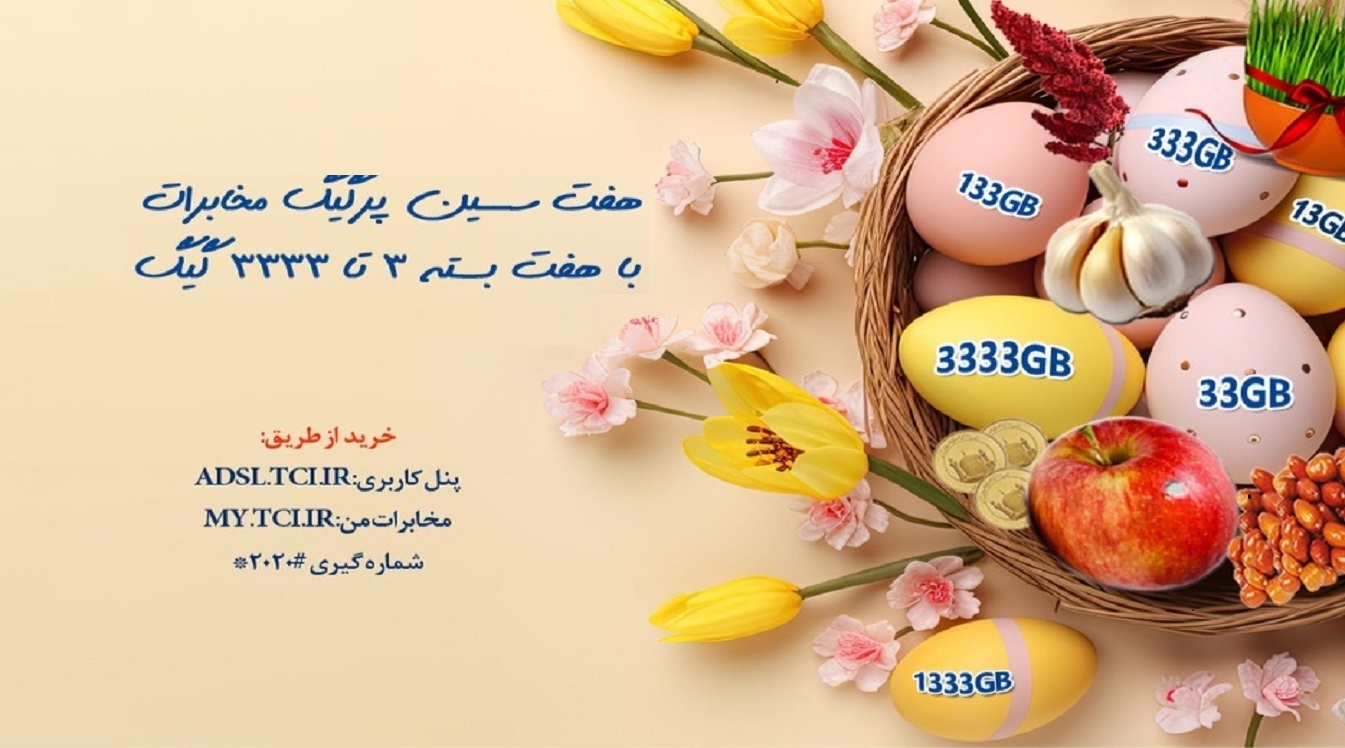 شرکت مخابرات ایران به مناسبت فرارسیدن سال نو، بستههای ترافیکی هفتسین را به تمام مشتریان اینترنت پرسرعت خود در حجمهای متنوع ارائه میدهد.
