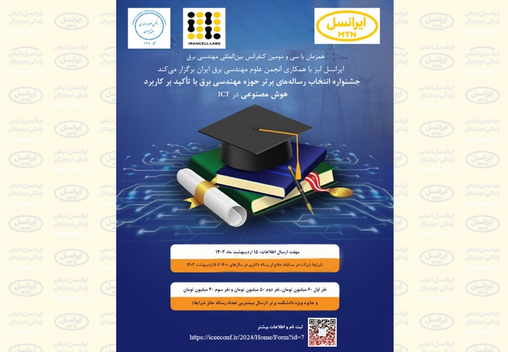 سومین دوره جشنواره رساله برتر مهندسی برق با تأکید بر کاربرد هوش مصنوعی در حوزه فناوریاطلاعات و ارتباطات، در حاشیه سیودومین دوره کنفرانس مهندسی برق، برگزار میشود. این کنفرانس، از ۲۵ تا ۲۷ اردیبهشت ۱۴۰۳ برگزار میشود و ایرانسل در این دوره نیز، همانند سالهای قبل، حامی برگزاری این کنفرانس است.