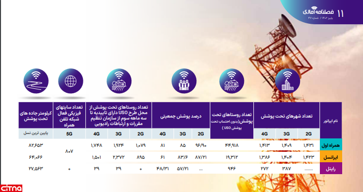 از سوی دیگر در این گزارش به تعداد سایتهای ۵G اپراتورهای ارتباطی تا پایان پاییز سال گذشته هم پرداخته شده که بر اساس آن تاکنون ۸۰۷ سایت نسل پنجم که متعلق به اپراتور دوم تلفن همراه است در کشور ایجاد شده است.