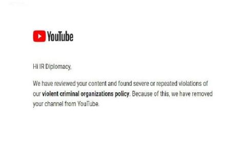 در نمایش دیگری از تناقض واقعیات آزادی بیان غربی با آنچه ادعا میکنند، حساب یوتیوب وزارت امور خارجه کشورمان مدتی پس از انتشار ویدئویی به زبان انگلیسی با عنوان «مقاومت، تنها گزینه فلسطین»، به بهانه نقض مقررات یوتیوب، حذف گردید.