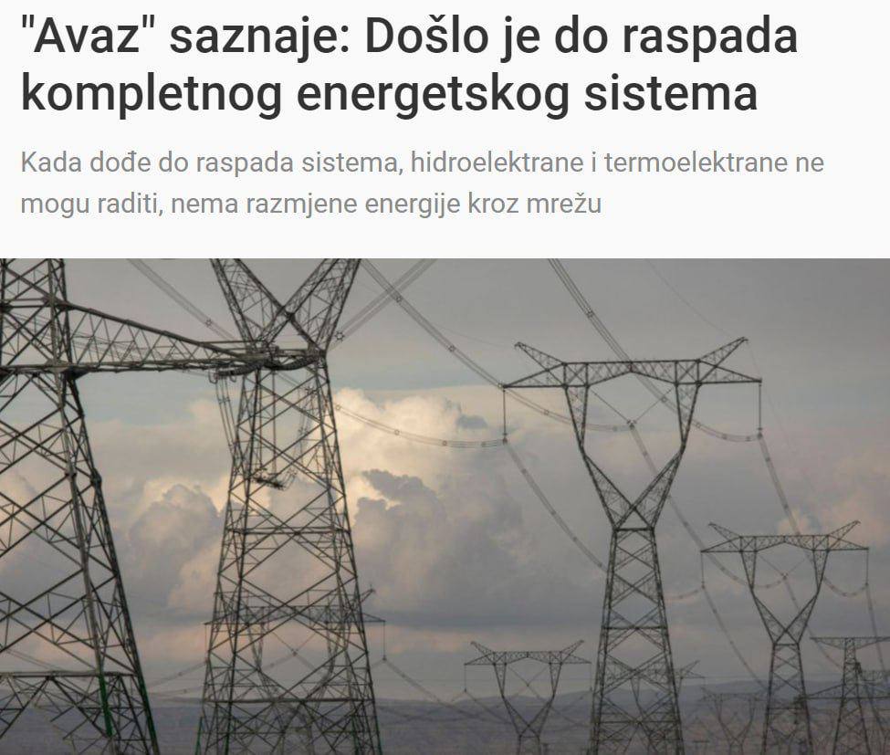 به گزارش سیتنا، روزنامه Dnevni avaz می نویسد مونته نگرو، بوسنی و هرزگوین و بخشی از کرواسی تقریباً به طور کامل بدون برق هستند.