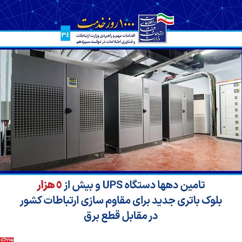 وزیر ارتباطات و فناوری اطلاعات گفت: بعد از سالها در دولت سیزدهم نوسازی و ارتقا زیرساخت برق مراکز حساس در شبکه مادر ارتباطی کشور نیز در دستور کار قرار گرفت و تامین بیش از 30 دستگاه ژنراتور پرظرفیت، ده ها UPS و پنج هزار بلوک باتری برای مقاوم سازی مراکز حساس در مقابل قطع برق از جمله این اقدامات است.