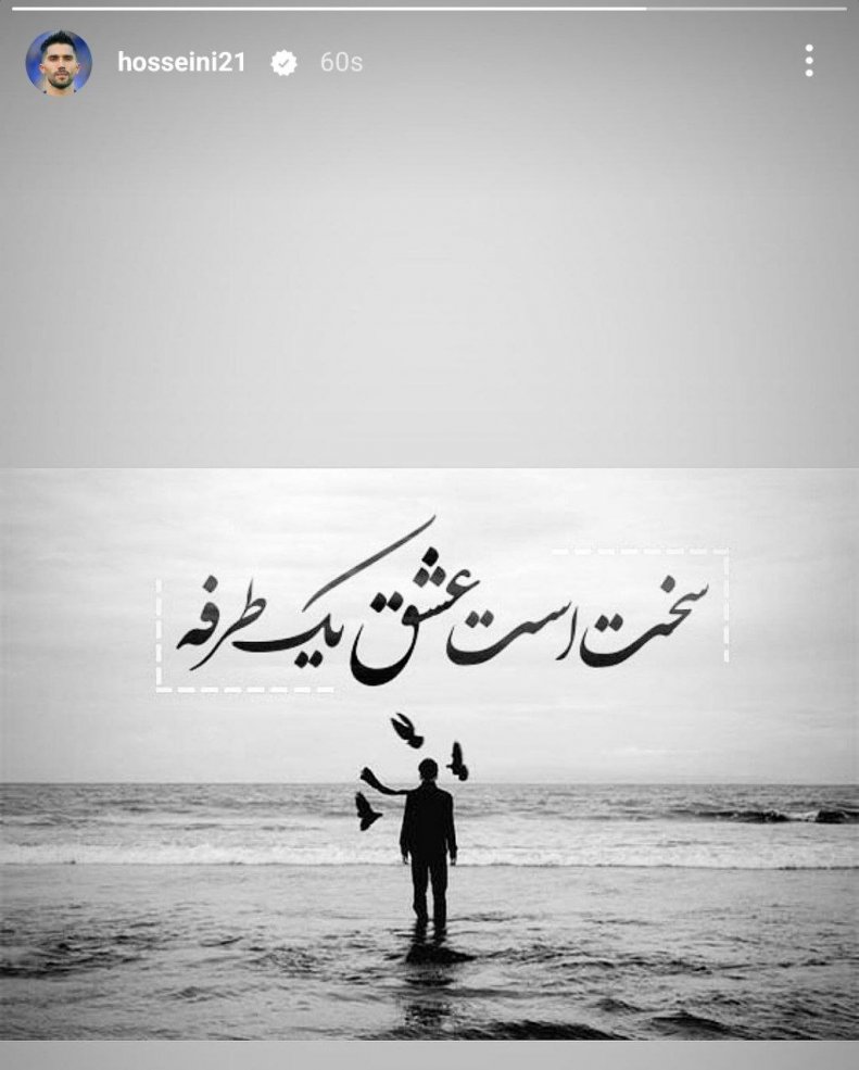با گذشت چند روز حالا حسینی یک استوری در صفحه مجازی خود منتشر کرده که به نظر میرسد منظورش به شایعات اخیر است. کاپیتان آبیها تصویری از فردی که تنها کنار ساحل ایستاده را منتشر کرده و عبارت «سخت است عشق یکطرفه» روی آن نوشته شده است.