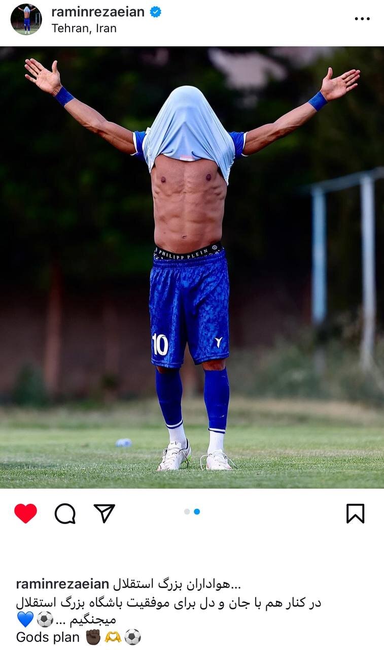 رامین رضاییان، خرید جدید استقلال برای اولین بار با پیراهن این تیم به میدان رفت و پس از بازی این پست را منتشر کرد.