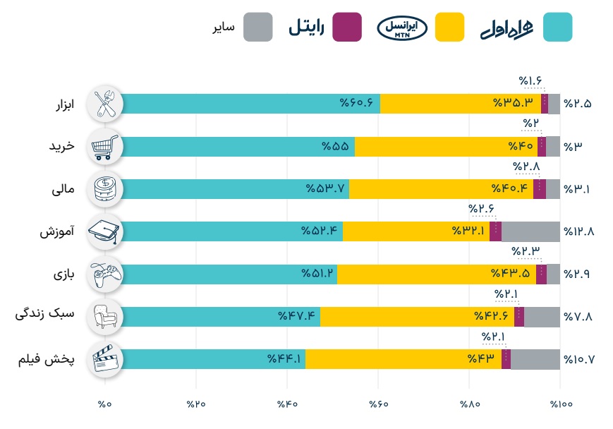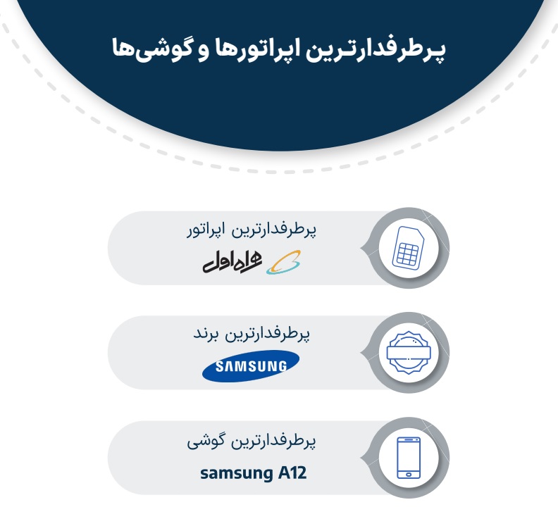 در میان اپراتورها نیز همراه اول در مجموع تمامی دستهها پراستفادهترین اپراتور بوده است.