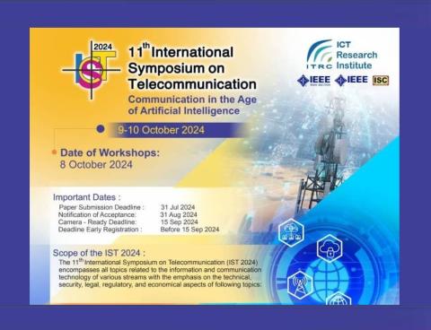 توضیح اینکه؛ سمپوزیومIST و نمایشگاه جانبی از تاریخ ۱۷ تا ۱۹ مهرماه در محل پژوهشگاه ارتباطات و فناوری اطلاعات (انتهای کارگر شمالی روبروی سازمان انرژی اتمی) برقرار خواهد بود.