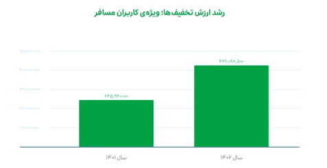 همچنین اسنپخودرو همواره تلاش میکند به مناسبتهای مختلف تخفیفهای ویژهای را برای کاربران مسافر در نظر بگیرد. در ۱۴۰۲، این بخش شامل تخفیف ویژه مؤسسات نیکوکاری، سفر درمانی رایگان با اسنپ برای خیریه پزشکی نوین و تخفیف به مقصد رویدادهای نیکوکاری بوده است. ارزش کل تخفیفهای اختصاصداده شده به کاربران مسافر برابر با ۴۲۶ میلیون و ۹۸ هزار و ۵۰۰ تومان است. در نمودار زیر رشد این بخش از مسئولیت اجتماعی اسنپ نسبت به سال پیش قابل مشاهده است: