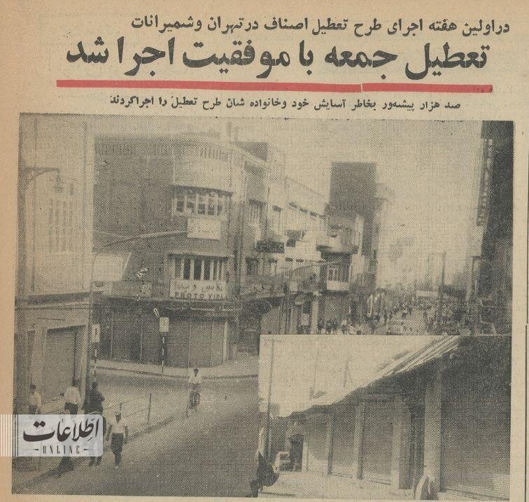 ۶۰ سال پیش در ۲۳ مرداد ۱۳۴۳ برای اولین بار اصناف تهران روز جمعه را تعطیل کردند.