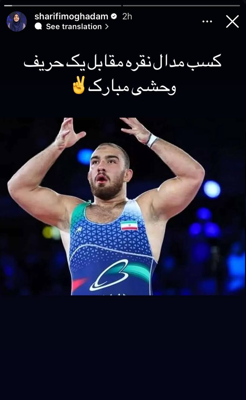 المیرا شریفی مقدم مجری صدا و سیما با انتشار استوری زیر در صفحه اینستاگرامش هم مدال نقره زارع را تبریک گفت و هم از رقیب او گلایه کرد!