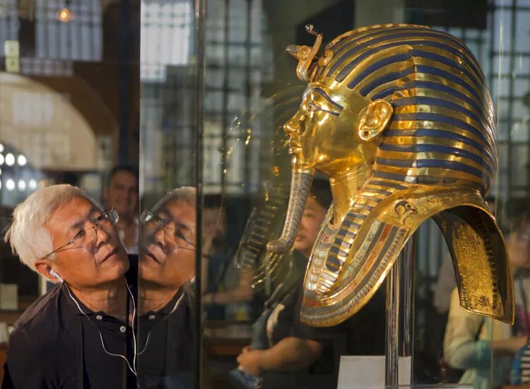 این نقاب طلایی که در حال حاضر در موزه مصر در قاهره به نمایش گذاشته شده است، حدود یک قرن پیش توسط باستانشناس بریتانیایی هاوارد کارتر کشف شد.