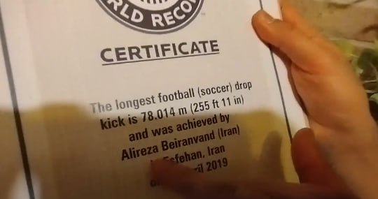 دروازه بان شماره یک تیم ملی و تراکتور که پیش از این با توجه به پرتاب دست اعجابانگیزی که داشت و توجه جهان را به خود جلب کرده بود، حکم گینس را به دست آورده بود اکنون دومین حکم رکوردشکنی را نیز از گینس دریافت کرده است.
