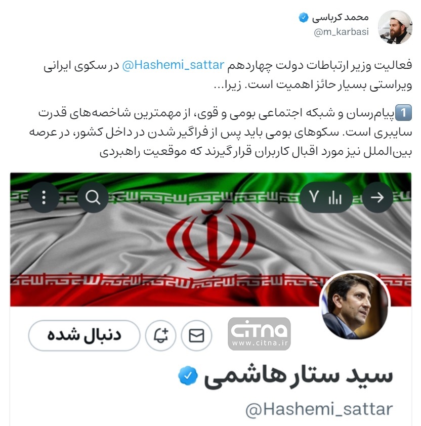 به گزارش سیتنا، محمد کرباسی، مدیر موسسه فمتا، در پستی در شبکه اجتماعی ویراستی آورده است: