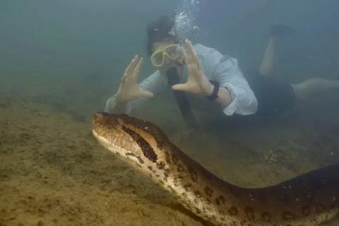 به گزارش سیتنا، بزرگترین مار جهان در حال که در اعماق جنگلهای آمازون در کمین بود دیده شد. این جانور 200 کیلوگرم وزن دارد و با ۱۳ متر طول، سری به اندازه سر انسان دارد. این ابر مار توسط یک فیلمبردار در اعماق آب ثبت شد.