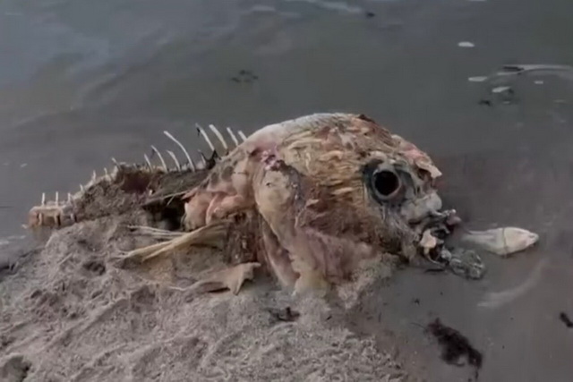 به گزارش سیتنا، جم، خانمی ۴۲ساله و اهل استرالیا، که با سگش در ساحل قدم میزد، چشمش به جسد نوعی موجود دریایی افتاد که از ظاهر آن نمیتوان تشخیص داد چه نوع ماهی و موجودی است. البته جسد این موجود مرموز که نوعی ماهی استخوانی به نظر میآید در مراحل پیشرفته تجزیه است.
