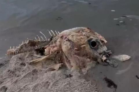 کشف جسد موجود دریایی ناشناخته در ساحل