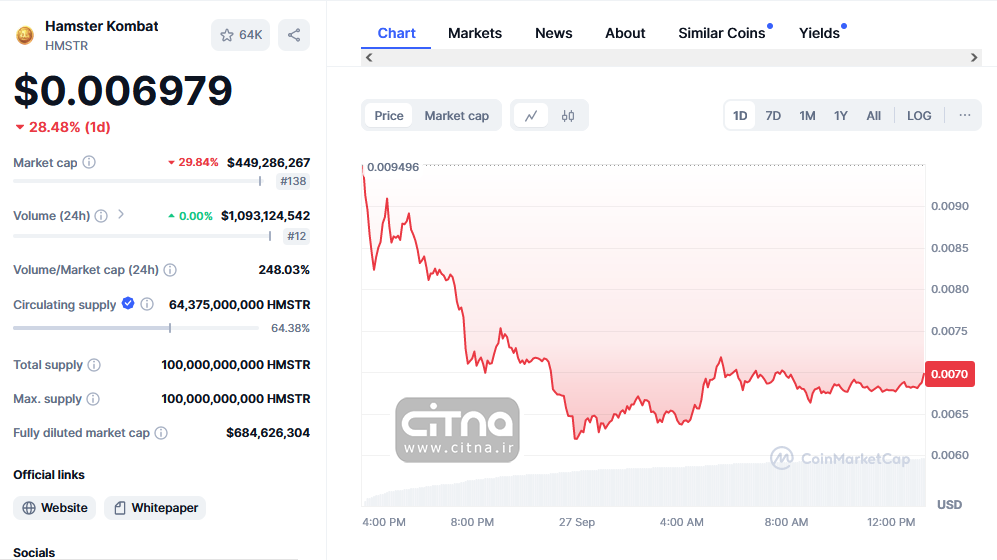 اما با توجه به حجم بالای فروش و عرضه گسترده این توکنها به بازار، قیمت همستر کوین با افت شدیدی مواجه شد.