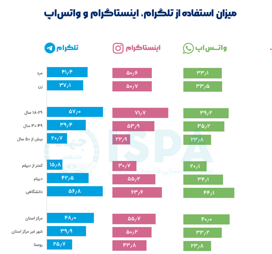طبق نظرسنجی جدید مرکز افکارسنجی دانشجویان ایران (ایسپا)، ۸۲.۲ درصد ایرانیان دست کم از یکی از پیام رسان ها و شبکه های اجتماعی استفاده می کنند.