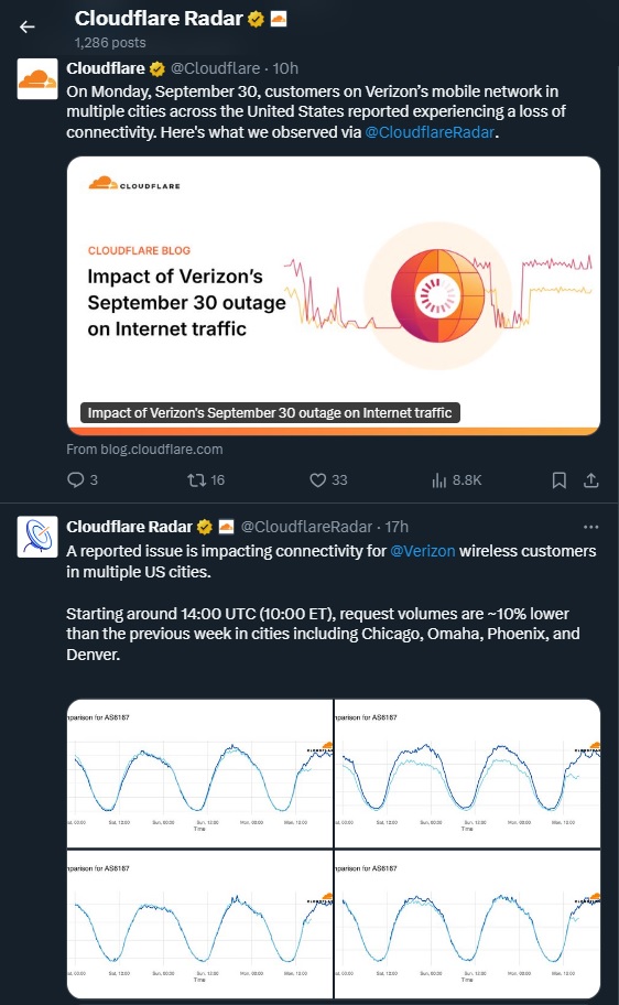سایت کلودفلر که سرویس دهنده خدمات CDN و خدمات ابری است و به صاحبان وب سایت ها خدمات گسترده ای در این زمینه ارائه می دهد، این اختلال را اعلام کرد و افزود که در برخی مناطق آمریکا کاربران ورایزن اعلام نارضایتی از این سرویس دهنده اینترنتی کرده اند.