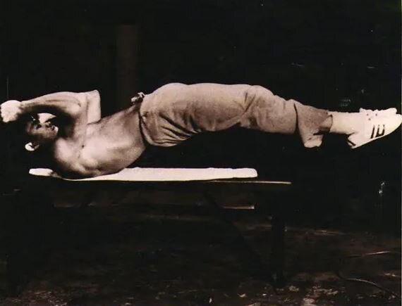 ۲- تصویر زیر بروس لی را در حال اجرای «پرچم اژدها» نشان می دهد. موقعیتی که گفته می شود او می توانست بیش از ۳۰دقیقه در آن حالت بماند.