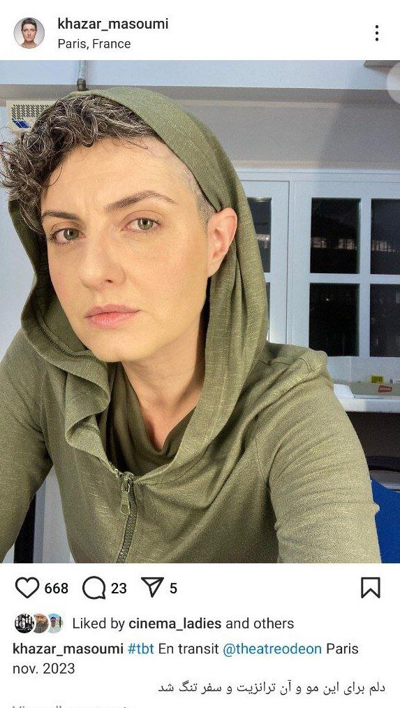 خزر معصومی، بازیگر فیلم سینمایی به رنگ ارغوان که به فرانسه مهاجرت کرده، با انتشار پستی برای ایران و گذشته خود ابراز دلتنگی کرد.