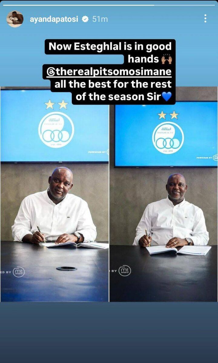 آیاندا پاتوسی بازیکن سابق استقلال با انتشار یک استوری به حضور موسیمانه در استقلال واکنش نشان داد.